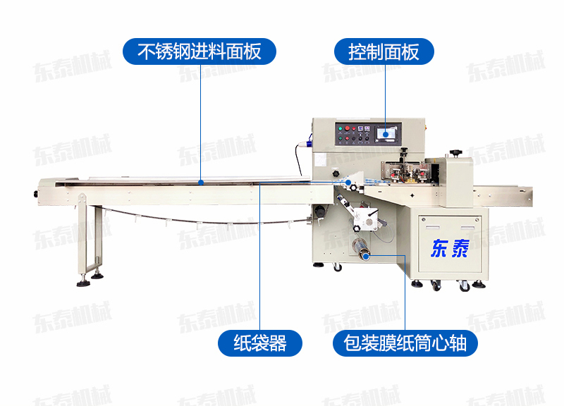 口罩包裝機可用于餅干、月餅、蛋黃派、米餅、雪糕、方便面、巧克力等塊狀產品的包裝,特別適合于小批量單一產品的包裝。