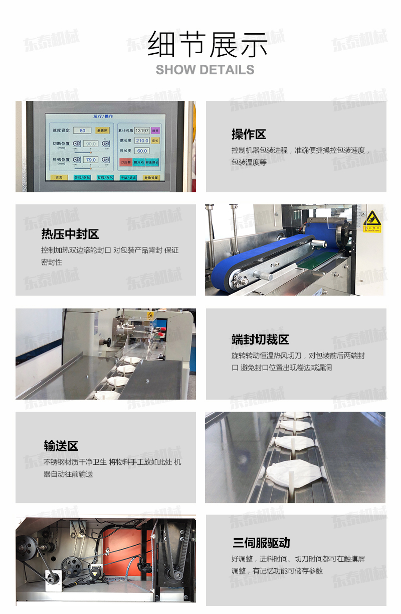 1.口罩包裝機速度快省人工山東濟南供貨枕式包裝機是目前國內新型的自動連續收縮 包裝設備,采用石英遠紅外管加熱,節電高效(節電15以上);