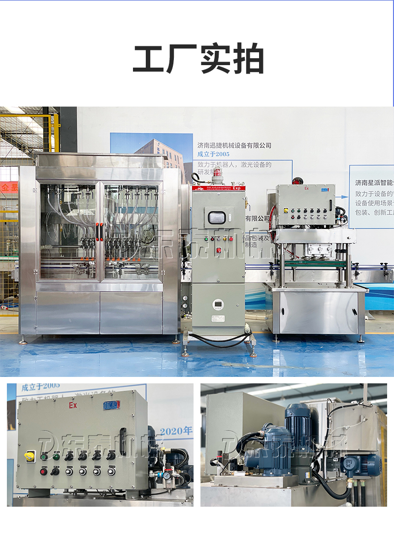 電子量杯感應直列式灌裝機,是目前國內液體灌裝的高端產品,自動化程度高,灌裝計量精確,適用于塑料瓶、玻璃瓶等各種幾何形狀的瓶型的不含氣體的酒水、飲料、調味品及其他溶液的定量灌裝。機器采用觸摸屏代替傳統的按鈕操作,操作簡單、方便、直觀。科技含量高。機器灌裝計量可通過觸摸屏對灌裝時間的調整實現不同計量灌裝,方便操作者使用。