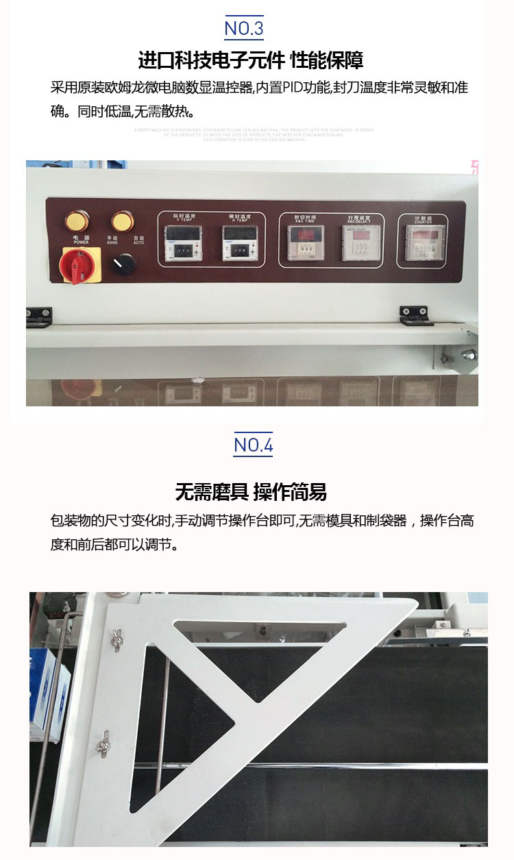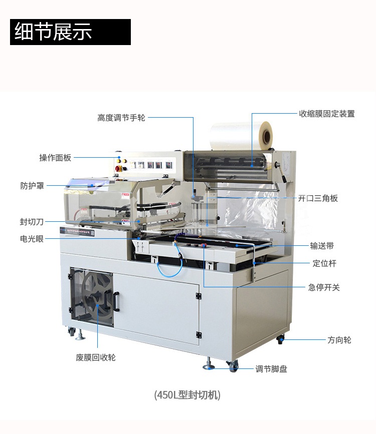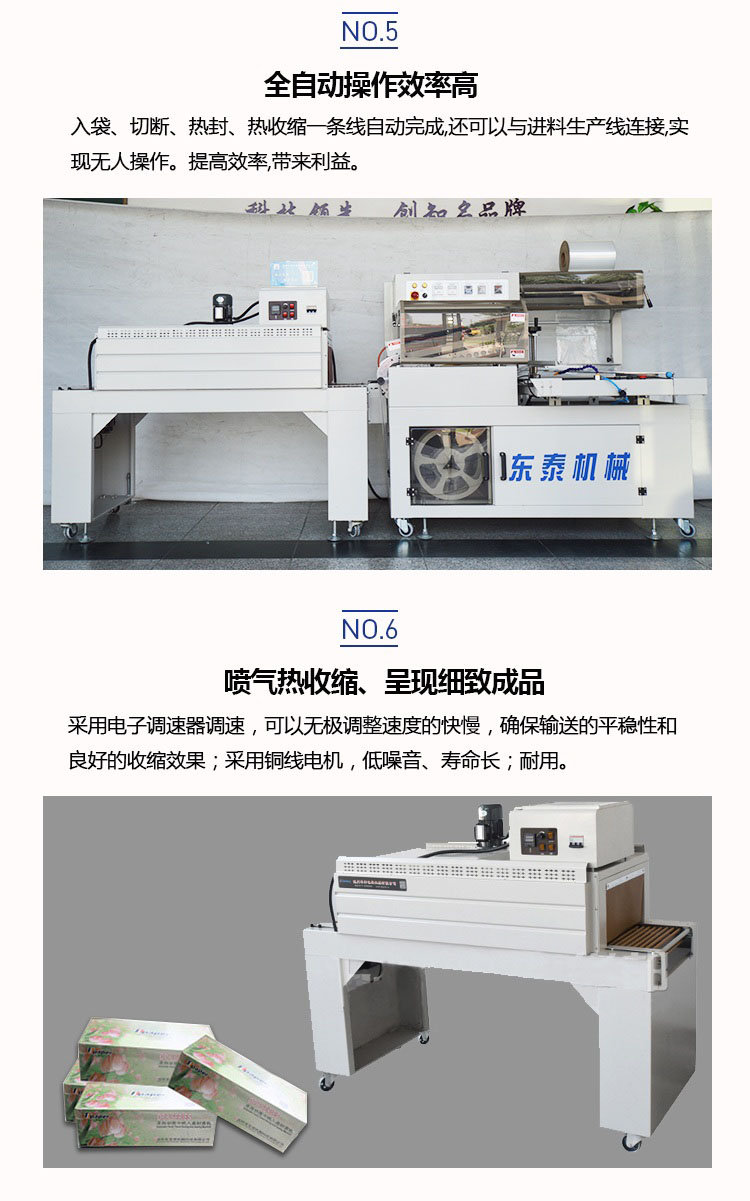 全自動(dòng)套膜收縮機(jī)是由全自動(dòng)450L封切機(jī)和熱收縮機(jī)組成,入袋、切斷、熱封、熱收縮一條線自動(dòng)完成,還可以與進(jìn)料生產(chǎn)線連接,實(shí)現(xiàn)無人操作。提高效率,帶來利益。全自動(dòng)化封切收割,適用于各種物品的套膜及收縮,生產(chǎn)效率高,品質(zhì)有保證。