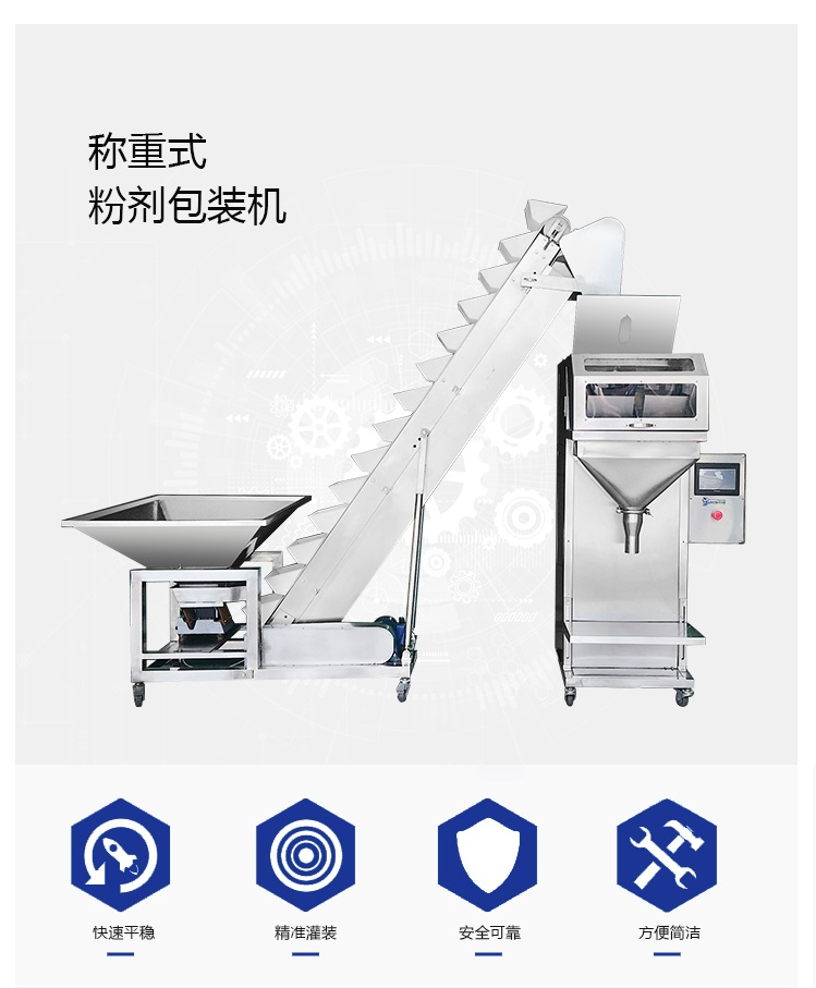 ZX-C型稱(chēng)重式定量包裝機(jī)是一種機(jī)械給料與電子稱(chēng)重組合的定量裝袋機(jī)械,廣泛適用于食鹽、化工原料、飼料、醫(yī)藥、糧食、食品添加劑等流動(dòng)性較好的顆;蚍蹱钗锪系亩堪b,其優(yōu)點(diǎn)是:操作簡(jiǎn)單、性能可靠、計(jì)量準(zhǔn)確、價(jià)格便宜、耐腐蝕性強(qiáng),是一種理想的定量包裝機(jī)械。