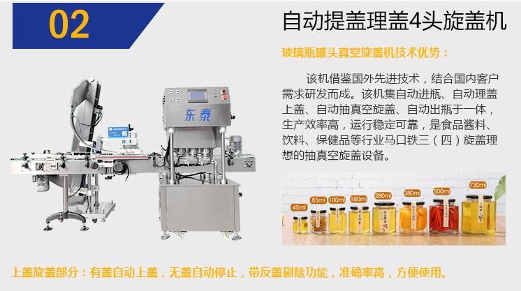 1、該機(jī)集自動(dòng)進(jìn)瓶、自動(dòng)理蓋、自動(dòng)上蓋、自動(dòng)抽吸真,自動(dòng)旋蓋,自動(dòng)出瓶于一體,生產(chǎn)速度快,效率高,運(yùn)行穩(wěn)定可靠。
